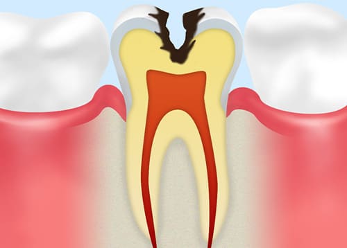 虫歯によって大きな穴が開き、神経にまで達した状態です。何もしなくても、ズキズキと痛みを生じます。